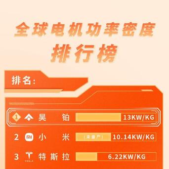 根据数据,电机的三项关键指标都达到了世界第一【图1、图2、图3】,这个数据超越了特斯拉、华为、比亚迪、小米。电机转速30000rpm、电机效率98.5%、电机功率密度13Wh/kg。特别是功率密度方面的数据,简直是断崖式领先。怎么做到的?咱们来分析分析。