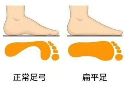 扁平足又称平足、鸭母掌等,是足部的任何骨骼、韧带、肌肉生理状态异常,导致足内侧纵弓或前足横弓出现塌陷或消失,尤其当足纵弓塌陷变平,足部的内侧完全或大部分与地面接触面积增大。